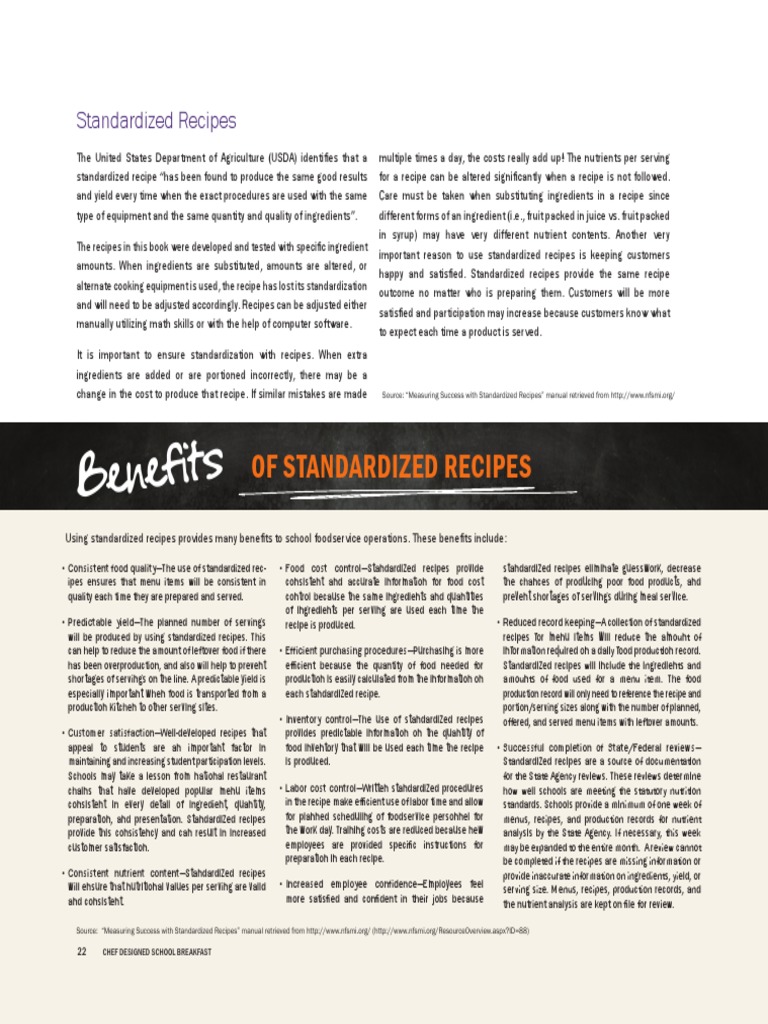Creating healthy meals is important when cooking for large groups of people especially in childcare settings. Standardized recipes may be either usda recipes or any other local recipe that has been tested and incorporated into the planned menu. Benefits of standardized recipes.